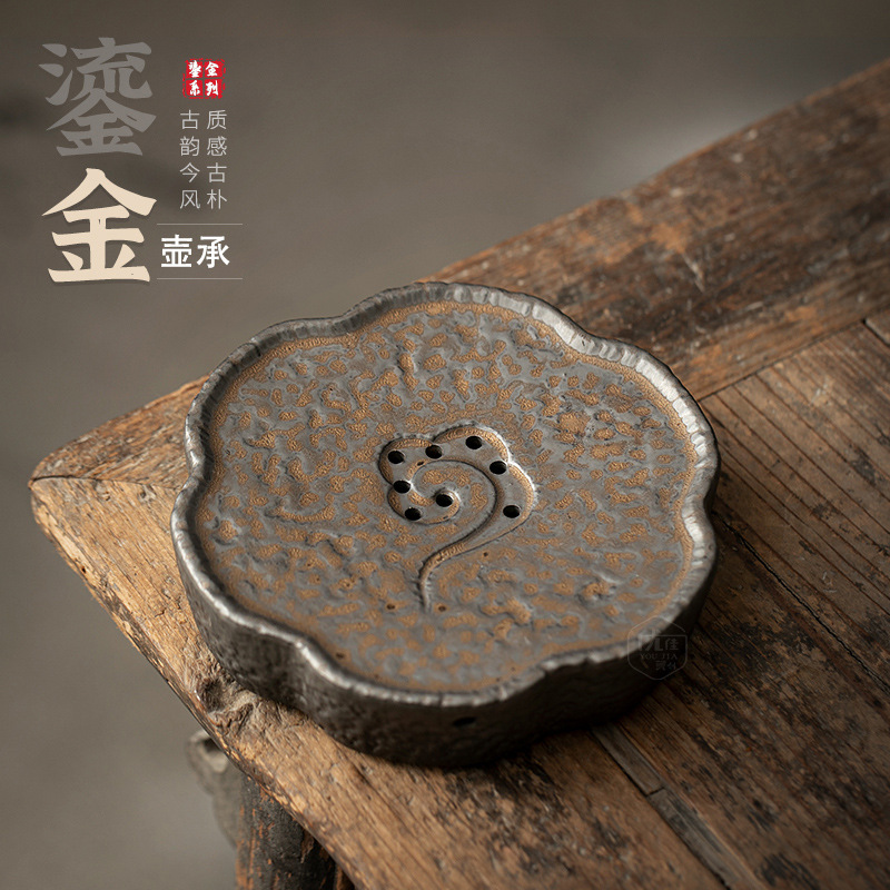 鎏金干泡台养茶壶底座禅意中式储水式壶承粗陶小茶台蓄水花瓣茶盘