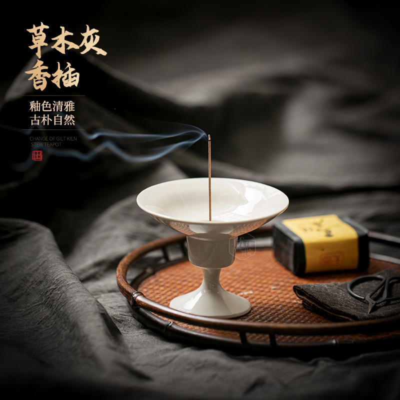 草木灰高足线香插仿宋陶瓷线香座盘香炉茶室书房檀香炉禅意香薰炉