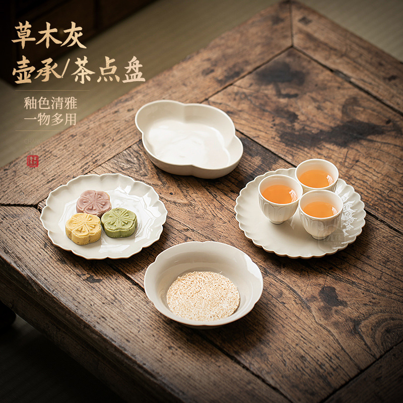 アンティークセラミックポットホルダー、草灰単層ティーポットホルダー、模造宋代ティートレイ、フルーツトレイ、家庭用ポットマット、ドライバブルテーブル