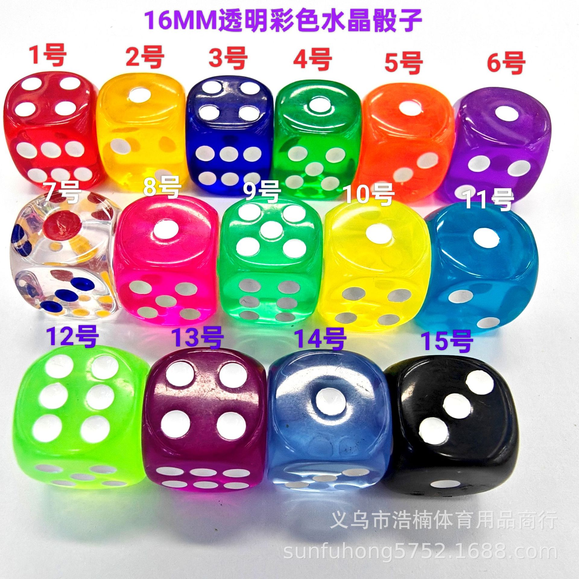 現物16mmアクリルカラー点数サイコロ水晶サイコロ透明点数色子対外貿易クロスボーダー生産