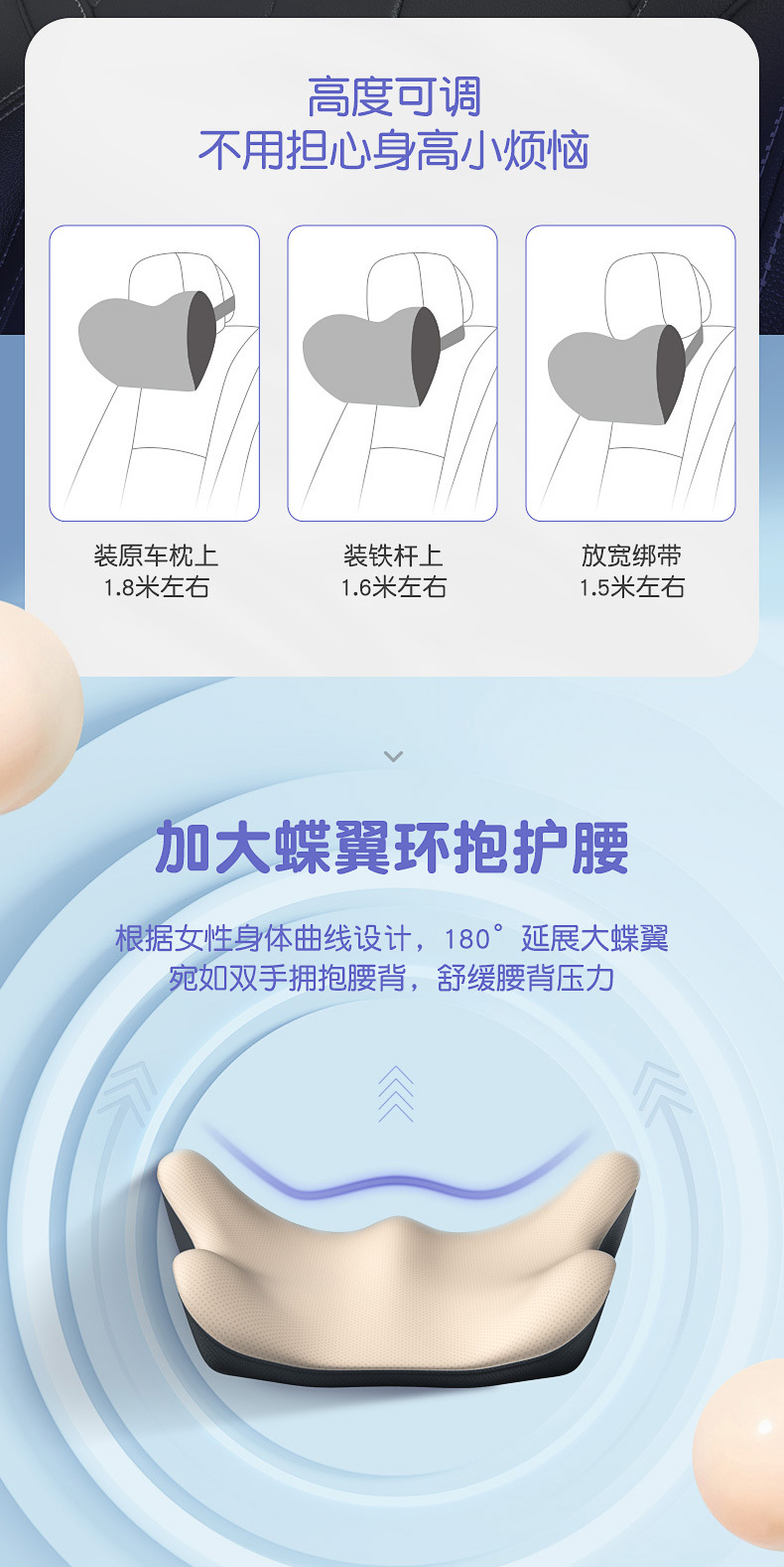 愛車屋自動車ヘッドレスト保護首枕シート腰枕記憶綿車載腰枕車車内用品