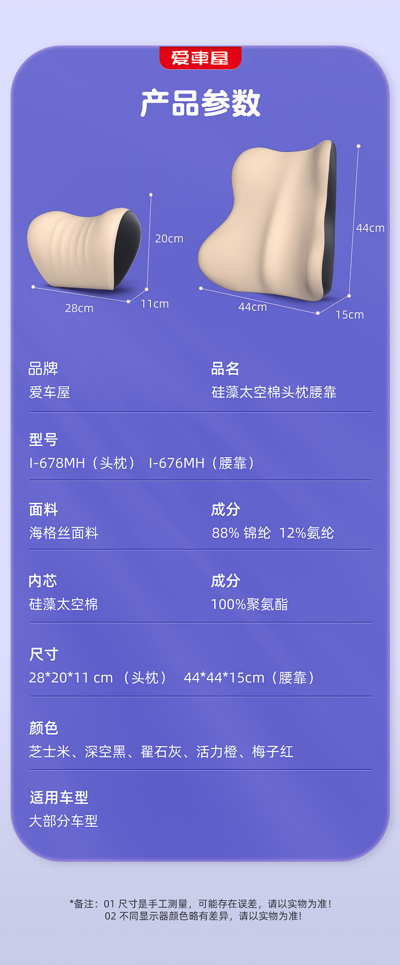 愛車屋自動車ヘッドレスト腰クッション車内シート保護首枕記憶綿車載一対車用頚椎クッション