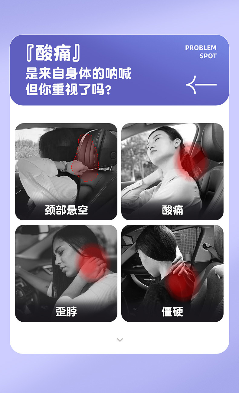 愛車屋の車の腰はヘッドレストのクッションに寄りかかって車を運転して腰の神器のシートの腰を保護します。