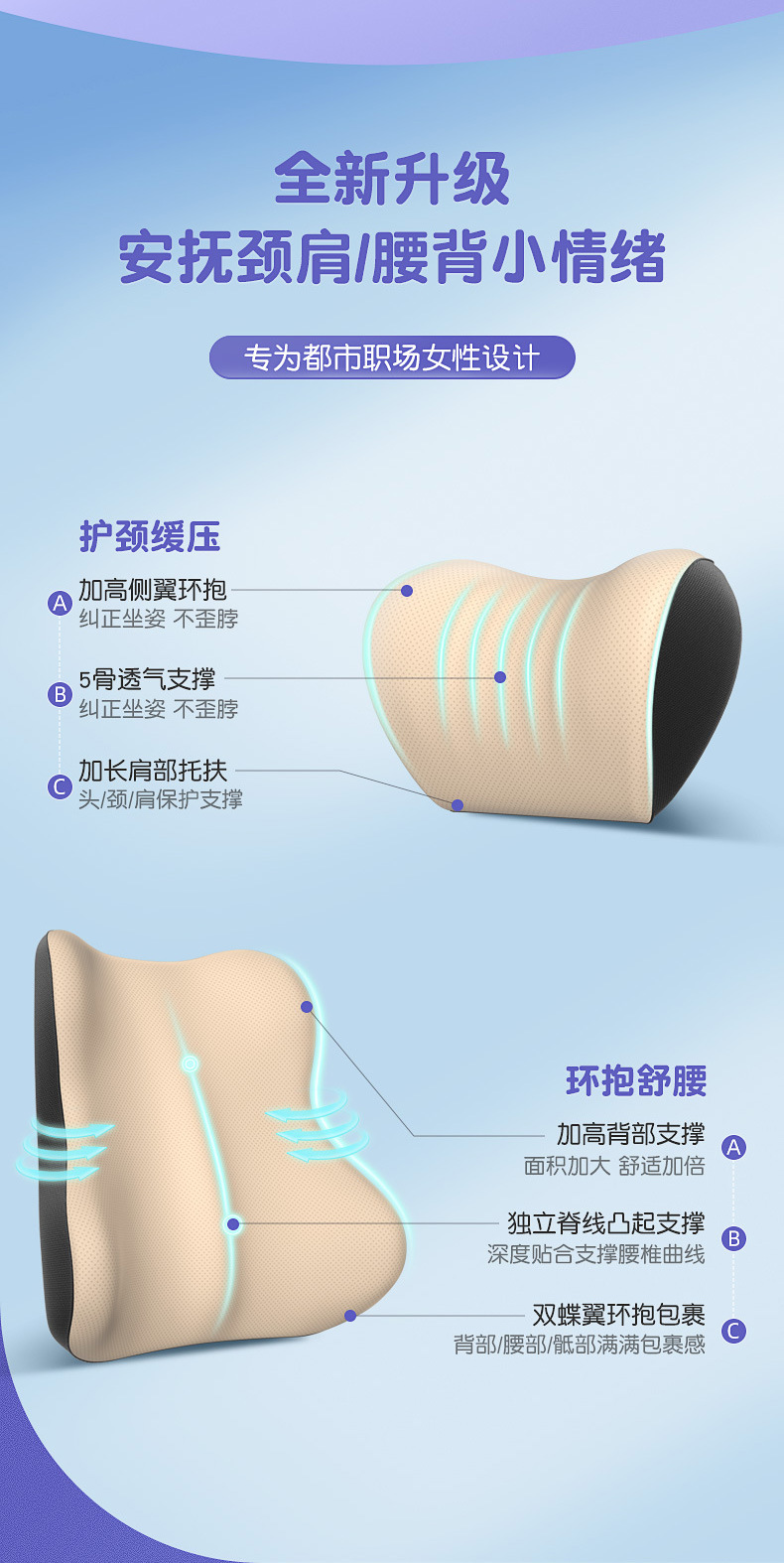 太空记忆棉汽车头枕腰靠 卡通可爱车载靠枕靠垫车用靠背护颈枕