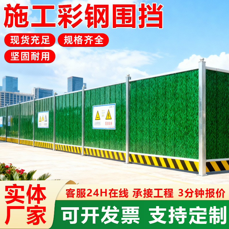 彩钢围挡单层铁皮工地道路施工围栏小草简易挡板建筑围墙护栏围蔽