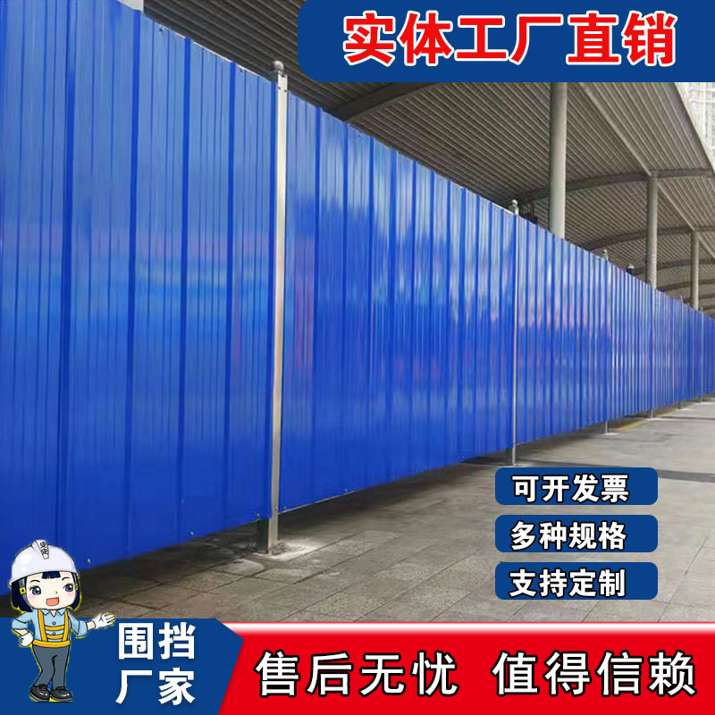 彩鋼囲い市政道路工事臨時囲いバッフル建築工事現場安全防護隔離トタン囲い
