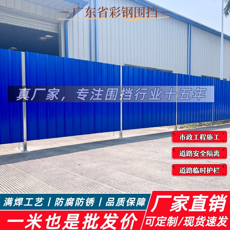广东彩钢围挡施工挡板市政工地道路安全临时彩钢瓦板铁皮围蔽围栏