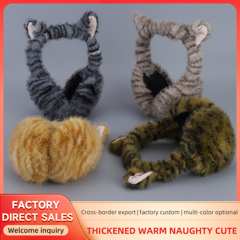 猫柄折りたたみイヤーマフ、かわいいぬいぐるみ、冬用暖かいイヤーバッグ、不凍液イヤーキャップ、イヤーマフ、耳保護加工品、クロスボーダー