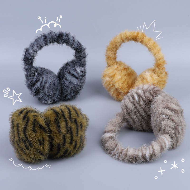 ヒョウ柄耳カバー保温冬欧米風パイル耳カバー冬耳保護パイル耳カバーかわいい折り畳み耳カバー