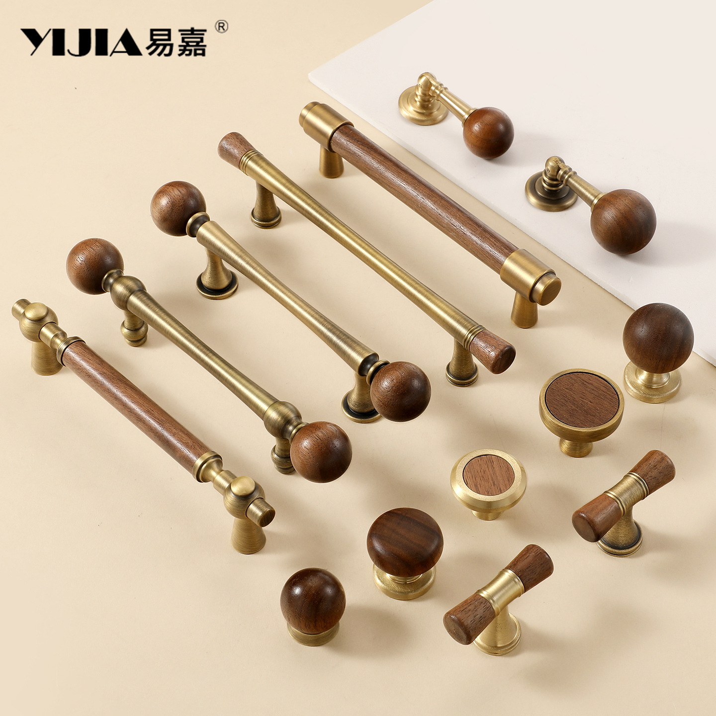 中古风拉手胡桃木柜门拉手美式轻奢黄铜抽屉柜子门橱柜衣柜门把手