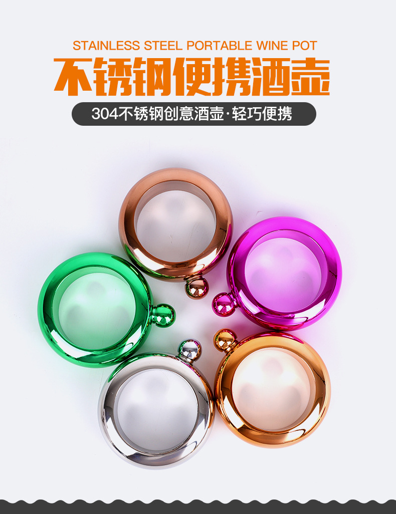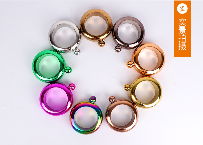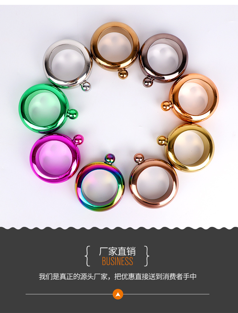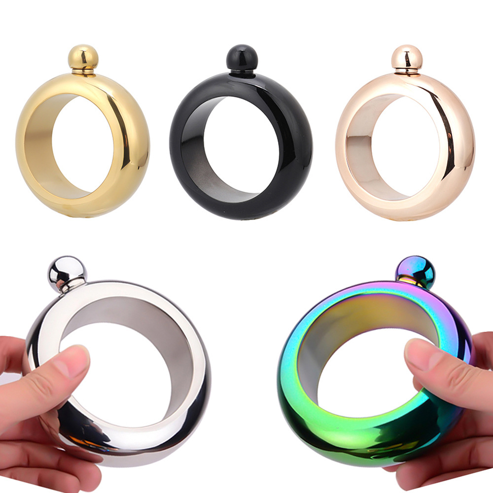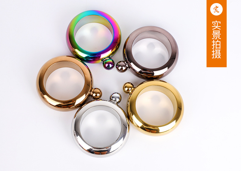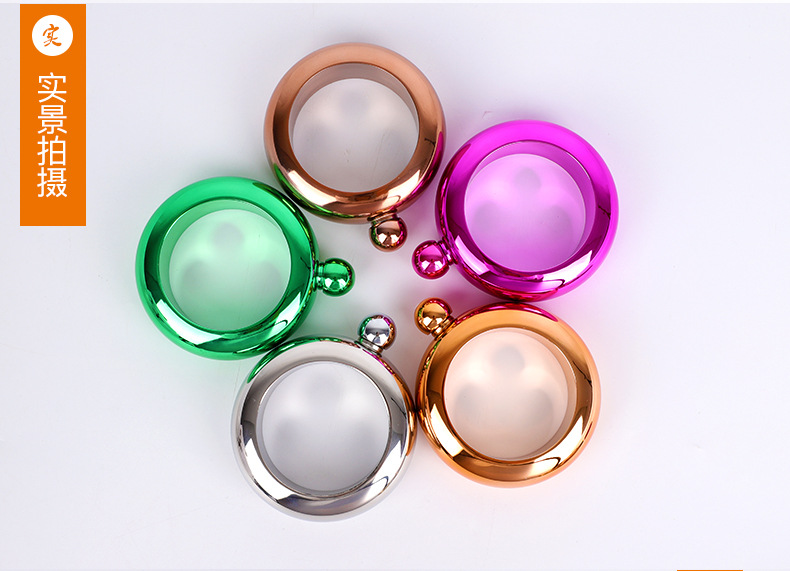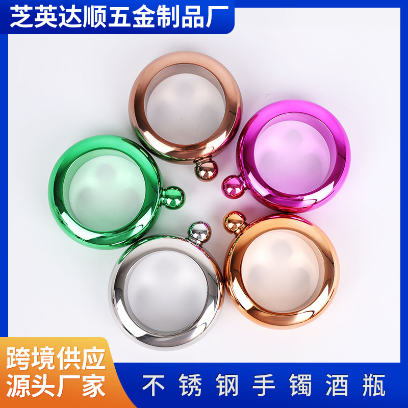 卸売りは304ステンレスブレスレットのポットを厚くして、女性の3.5オンス円形の手環白酒瓶を越えた