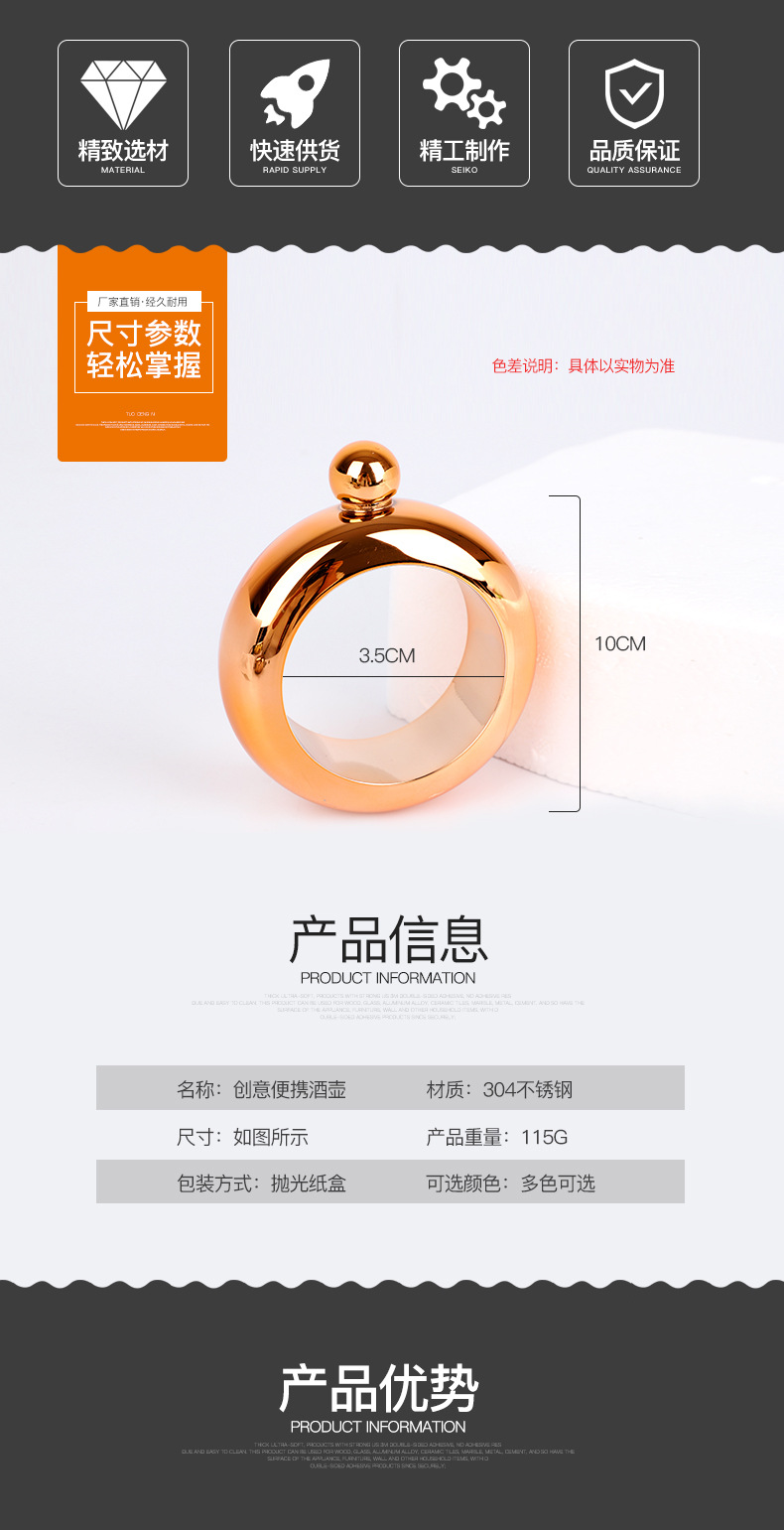 メーカーはステンレスの携帯リングを厚くして、ロシアの手環酒壺304ステンレスのブレスレット酒瓶を提供しています。