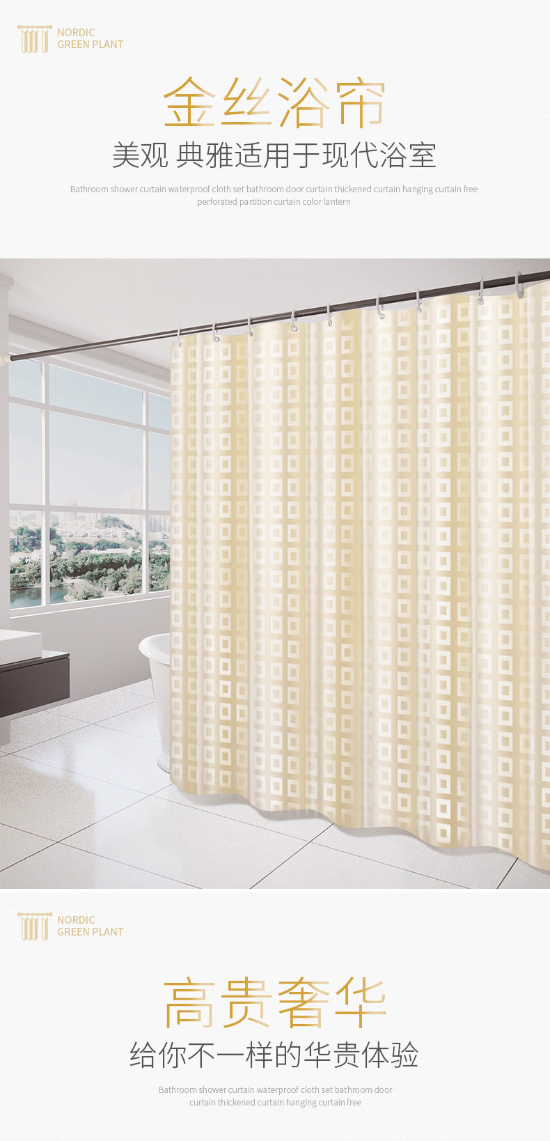 陰陽条鍛造条厚い防水シャワーカーテンポリエステル不透明シャワーカーテンホテル風呂カーテン卸売り
