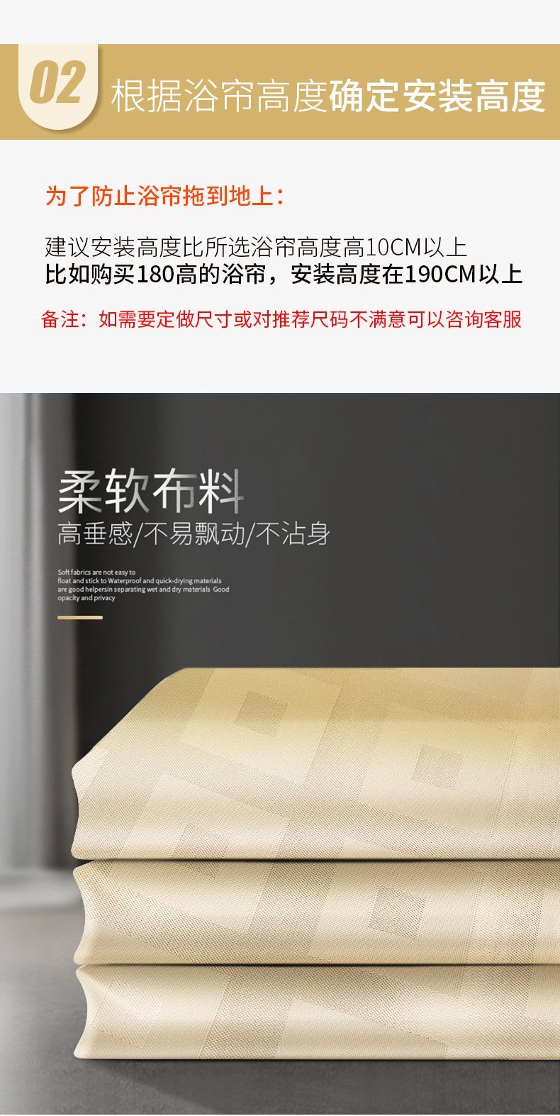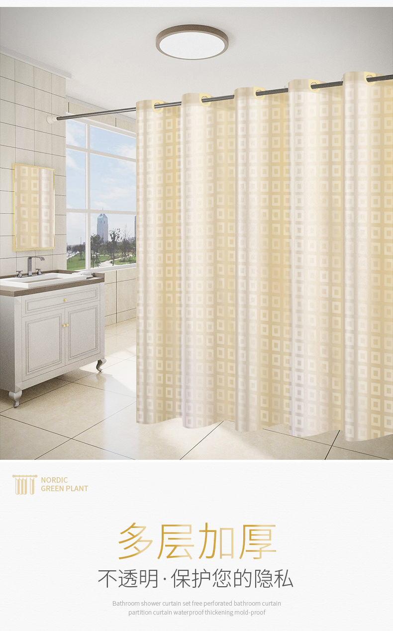 回格バスカーテンホテル防水厚手バスルームジャカードバスカーテントイレ仕切り大きいリング