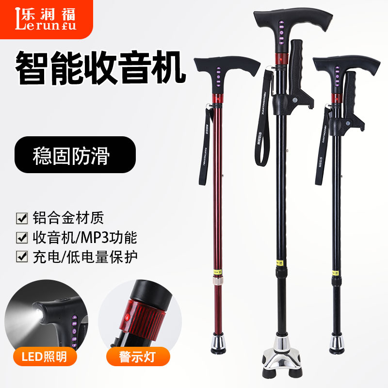 多機能スマートラジオステッキ高齢者滑り止め伸縮ステッキライト付きアルミ合金ハンドスティック高齢者松葉杖