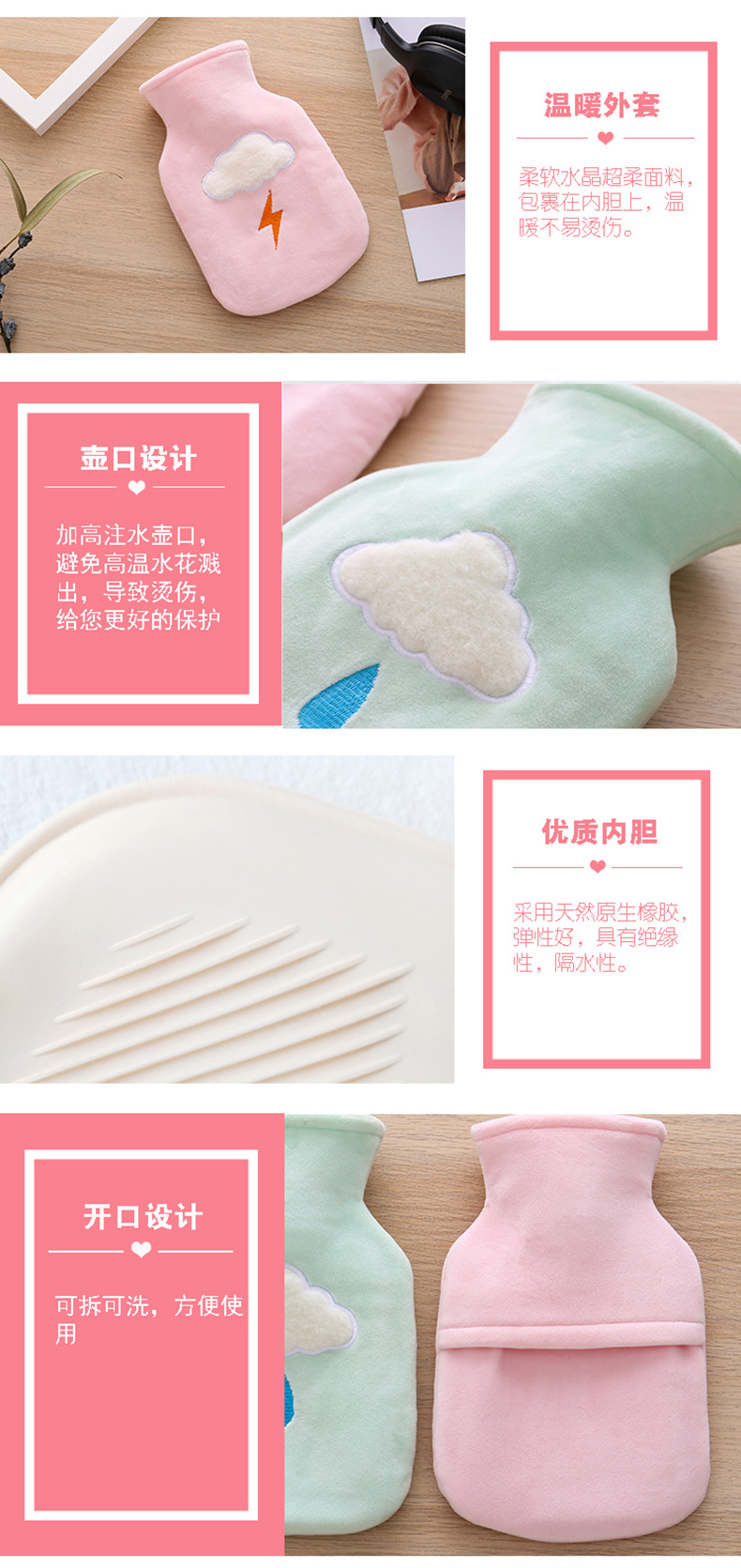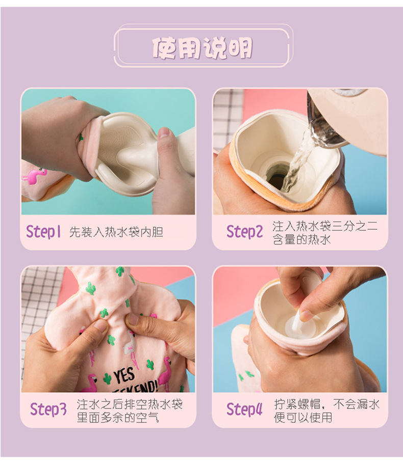 可爱热水袋防爆pvc内胆家用可爱卡通毛绒注水暖水袋泰迪绒暖手宝