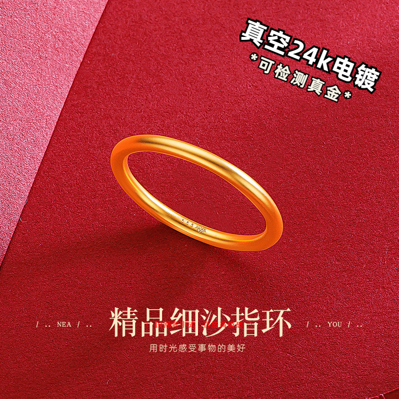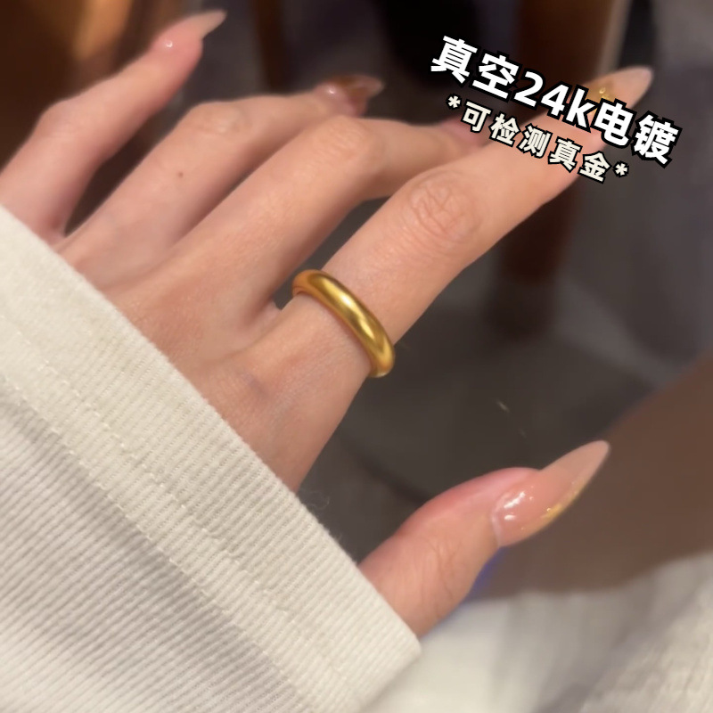 新中国式デザイン感古法伝承どじょう背厚素輪指輪女沙金閉口金工指環卸売り