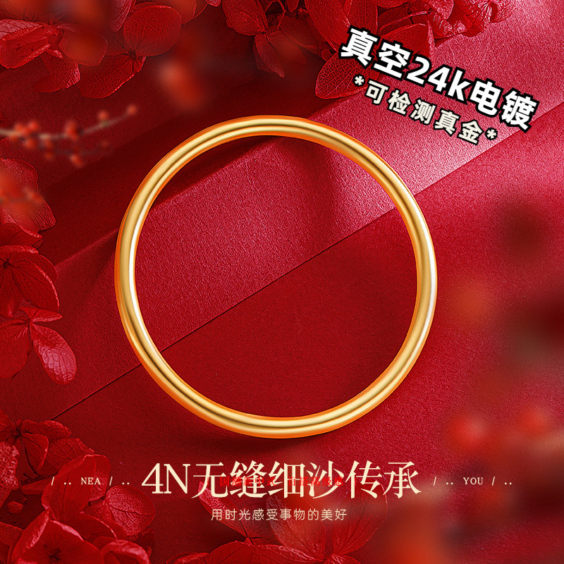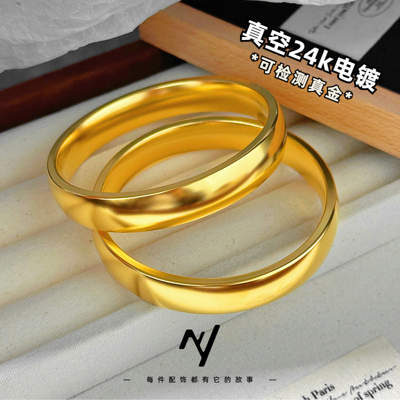 批发真空24k电镀金包铜古法传承手镯 小红书抖音久不掉色素圈镯子