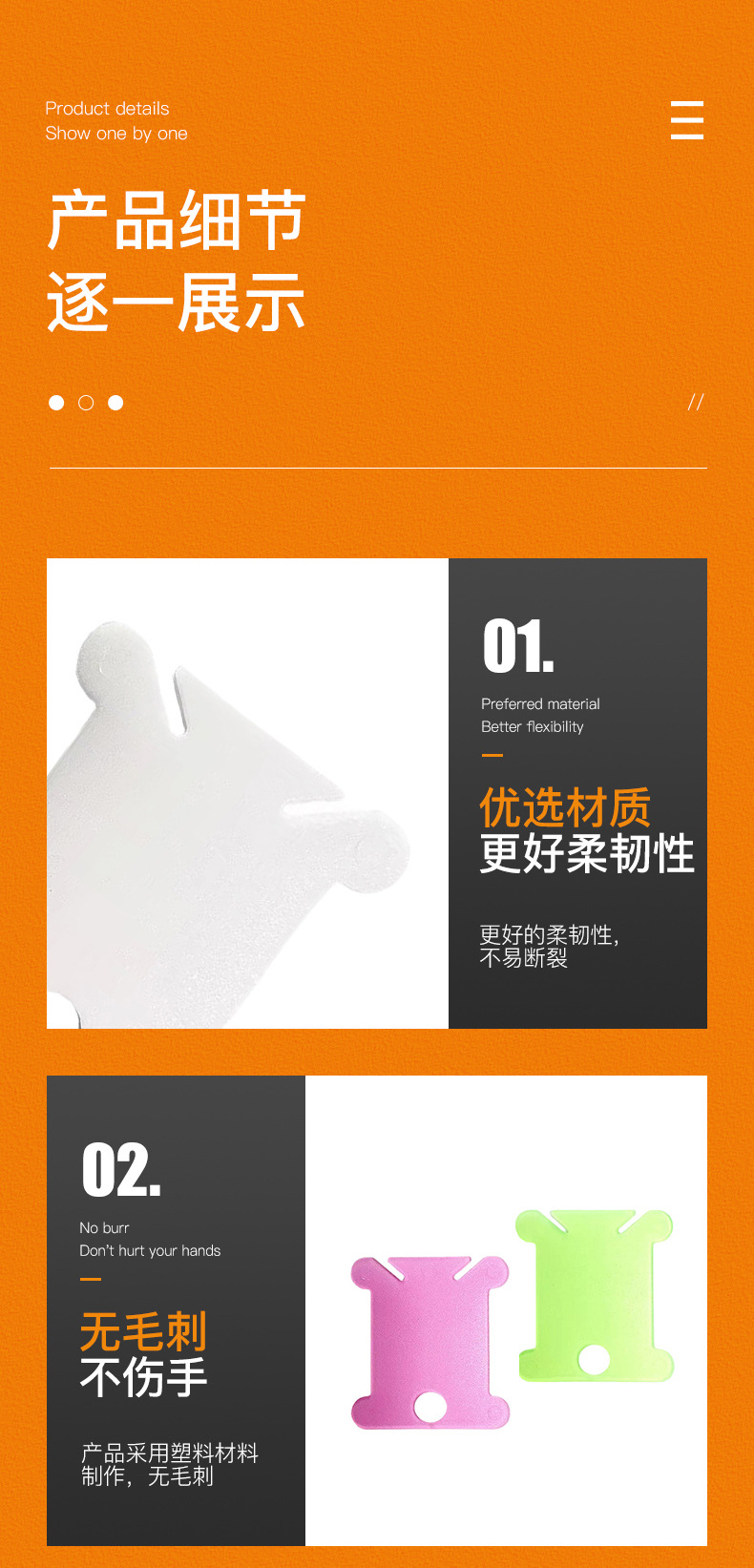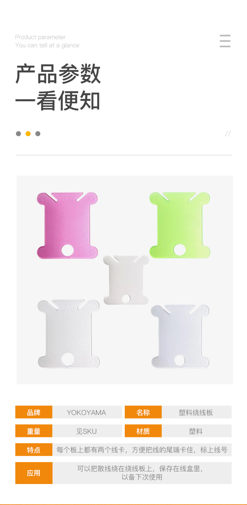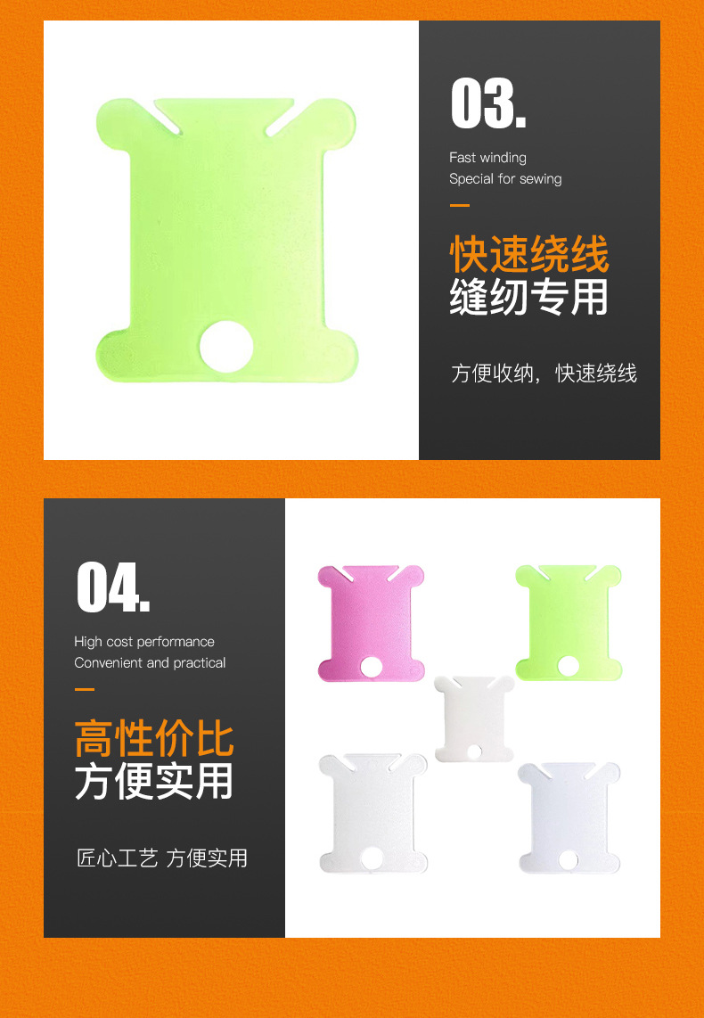 用途:每次绣完一幅作品,都会剩下一些绣线,可以把这些散线绕在绕线板上,保存在线盒里,以备下次使用