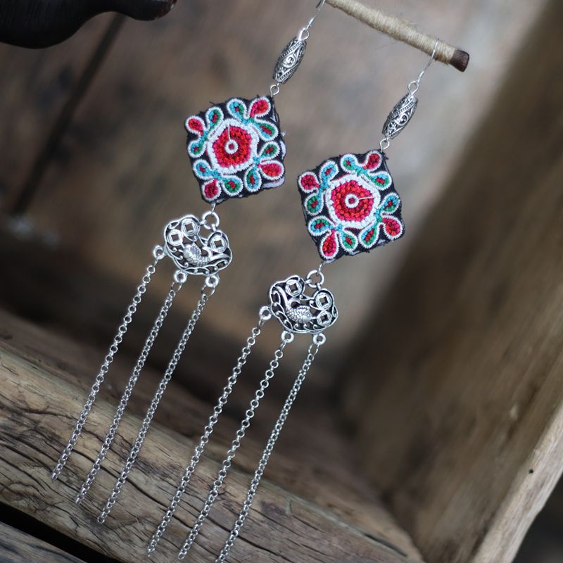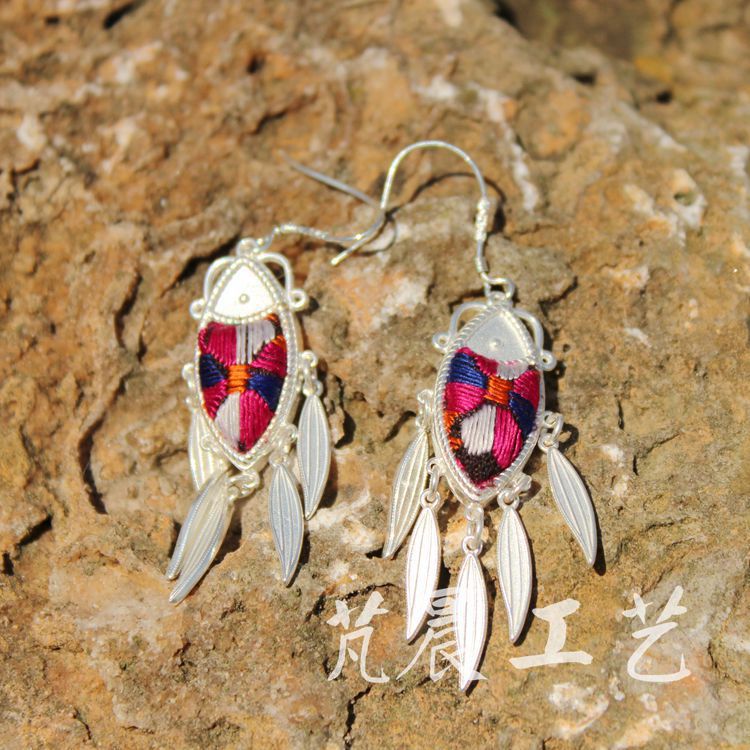 材质:手工刺绣、苗银