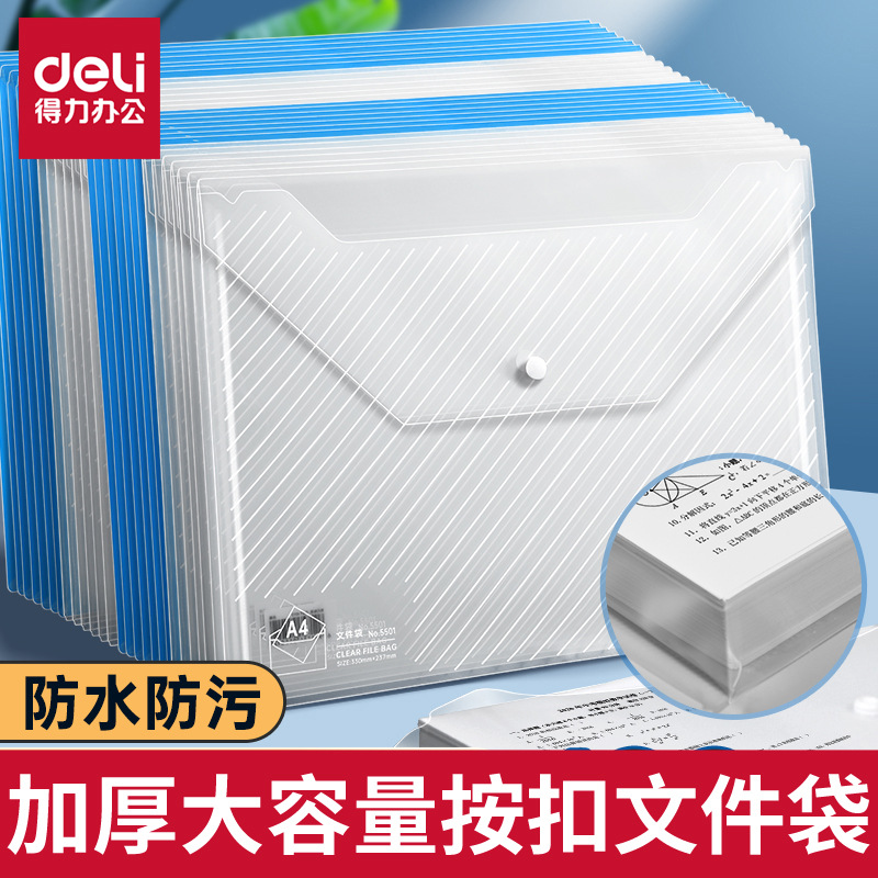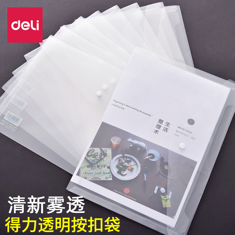 得力5505プラスチック書類袋透明書類袋ボタン書類袋試巻袋a4ボタン袋収納袋