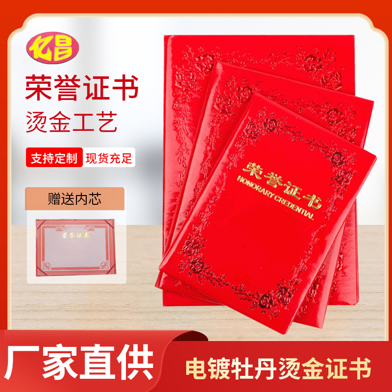 硬本箔押し栄誉証明書牡丹花学校単位結納書修了証明書6k8k12k受賞証明書