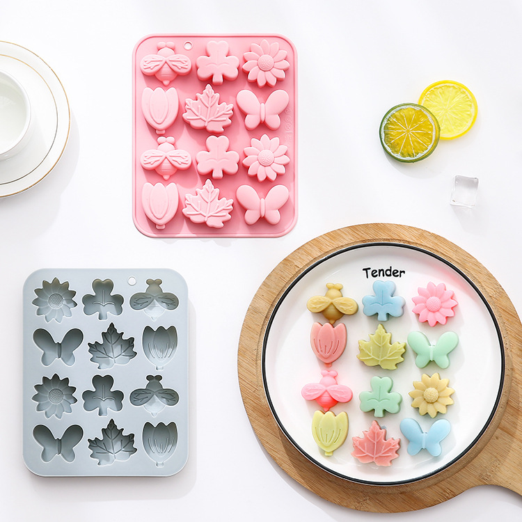 现货 12连蜜蜂蝴蝶叶子小草花朵等造型硅胶模具蛋糕模巧克力模具