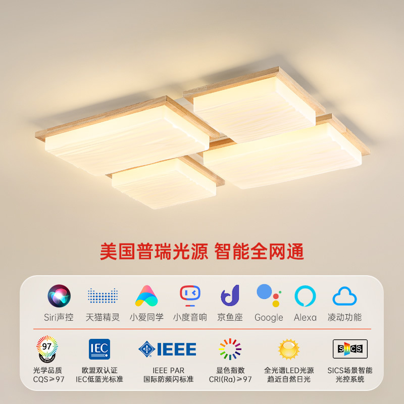 クリーム風客間灯実木北欧シンプル輸入普瑞光源寝室灯書斎知能米家ledランプ