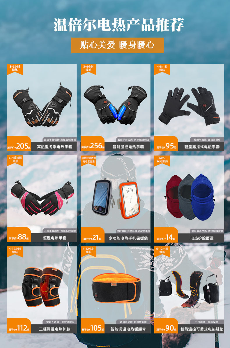 温倍爾メーカー充電加熱手袋スキー自転車タッチパネル知能温調五指保温冬卸売り