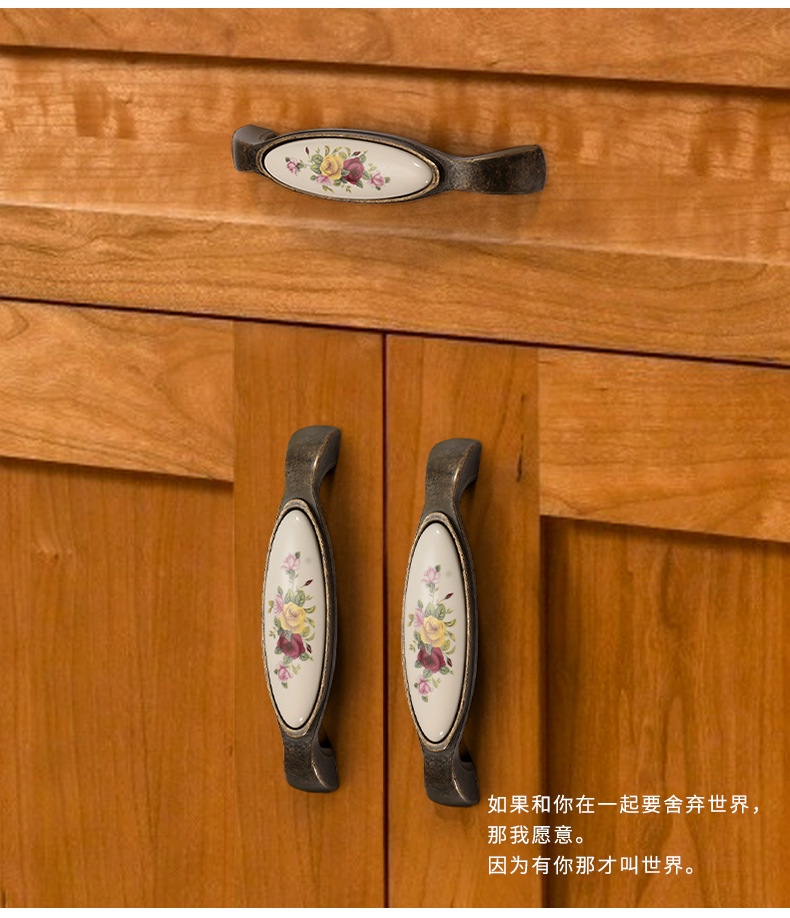 易嘉青古銅復古取っ手陶磁器ヨーロッパ風現代シンプルキッチンキャビネット引き出したんすドアノブ