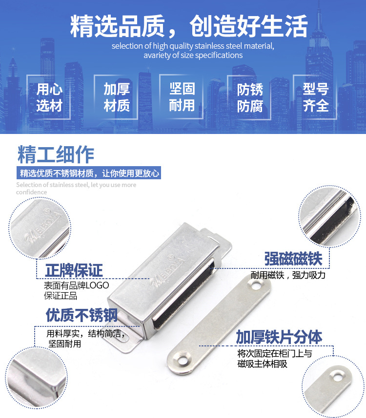 Wugang ステンレス鋼大型キャビネット吸引家具キャビネットドア磁気吸引肥厚鉄シートシングルドアマグネット強力な磁気タッチ卸売