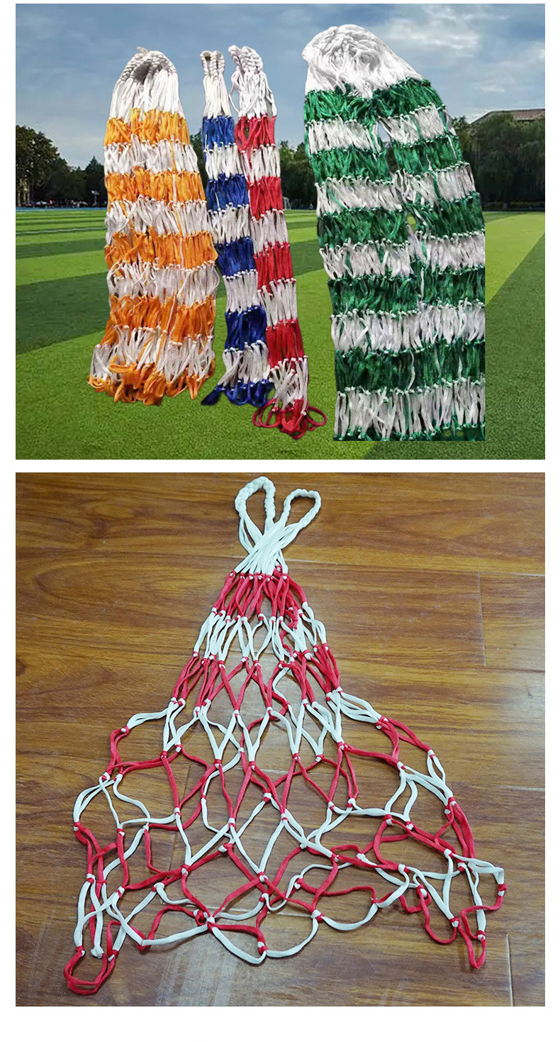メーカーの卸売りは太いポリプロピレンポリエステルのバスケットボールのネットの子供の試合型の単双三色のバスケットボールの枠のネットをプラスします。