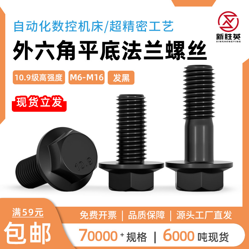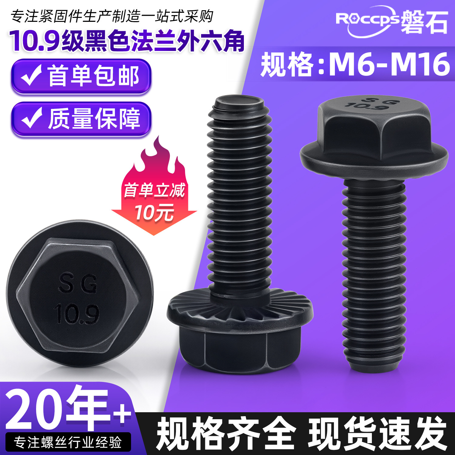 10.9级黑色法兰外六角螺丝GB5787带介螺钉法兰带齿螺栓M6M10-M16