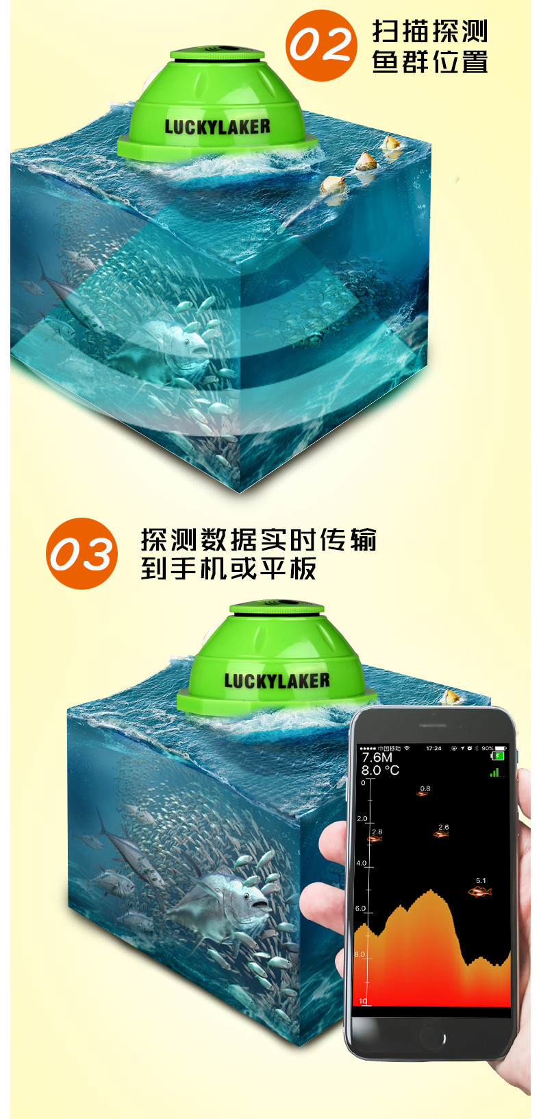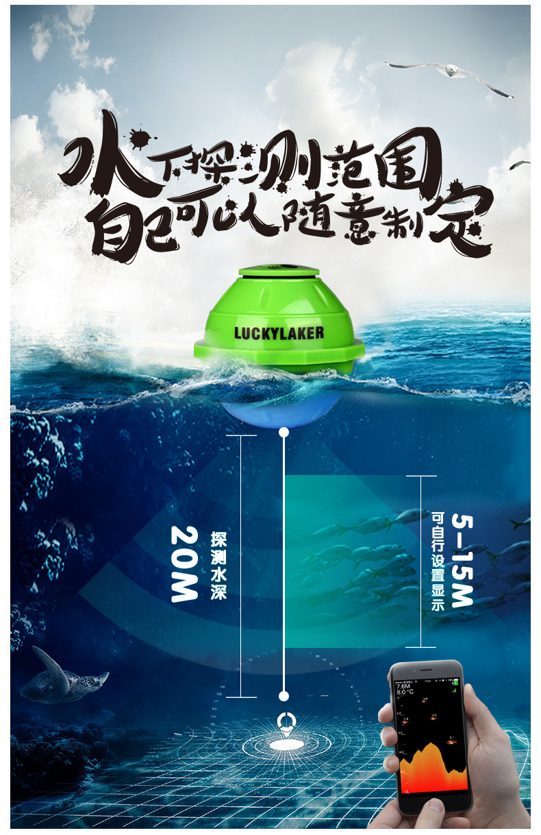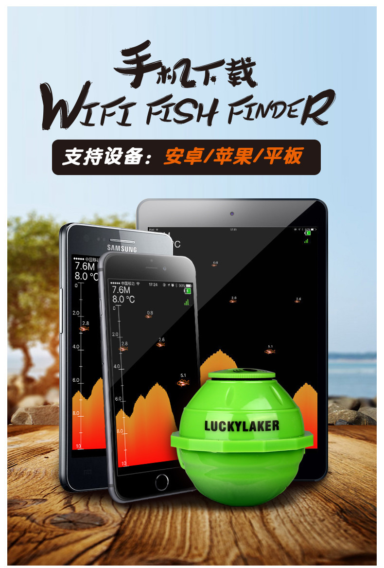 LUCKY乐琦手机款无线声纳wifi智能充电探鱼器户外鱼群探测仪器跨