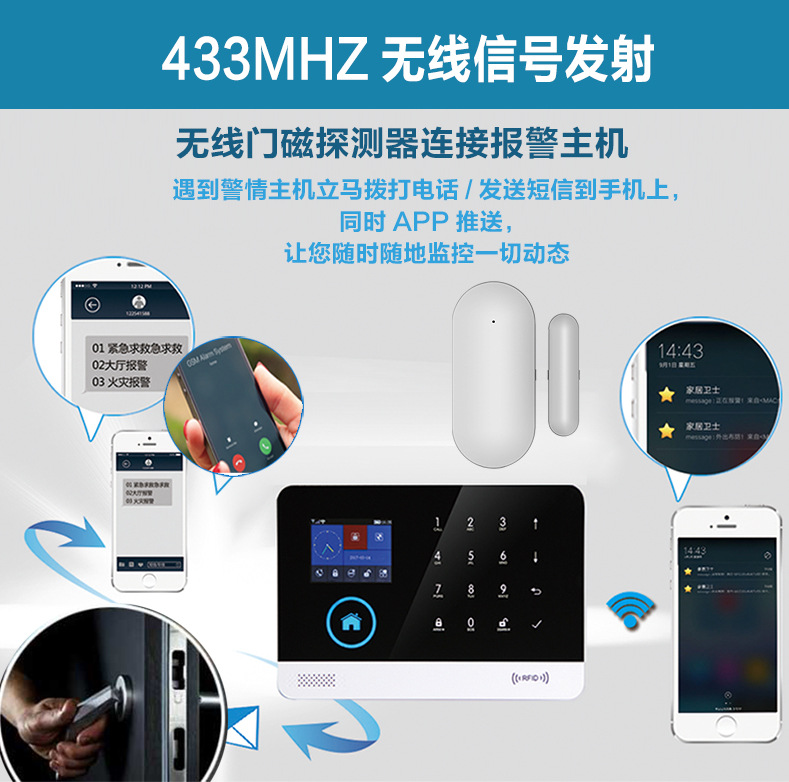 ホスト電話、SMS、APPアラームに接続します