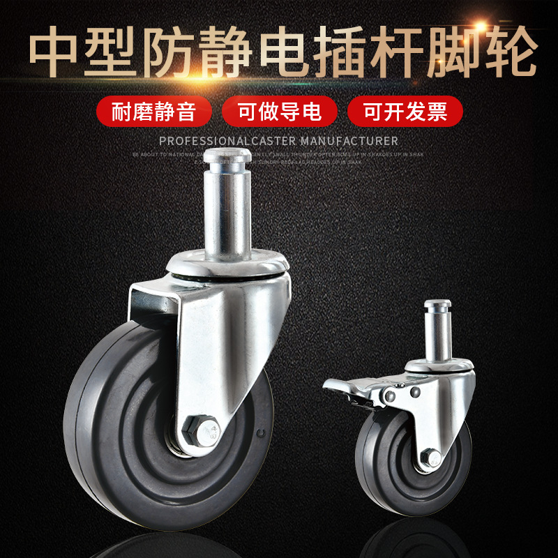 卸売り静電気防止キャスター差込棒万能輪3インチ4インチ5インチリーン管鉄差込棒ゴム輪双軸受輪