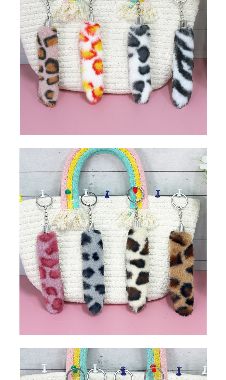 新しい ins パーソナライズされたレトロな甘くてクールなスタイルの模擬ヒョウ柄グラデーションぬいぐるみテール DIY キーホルダーバッグペンダント