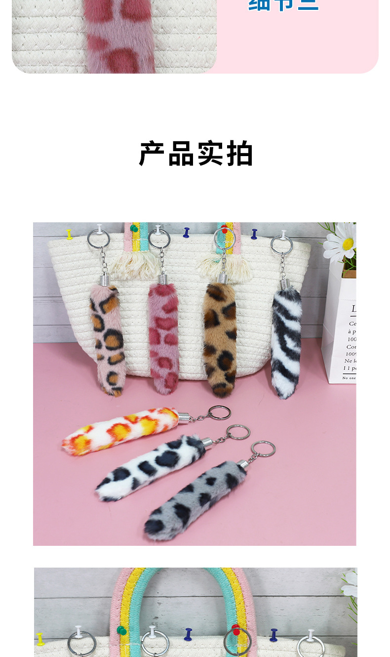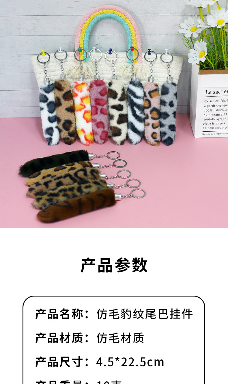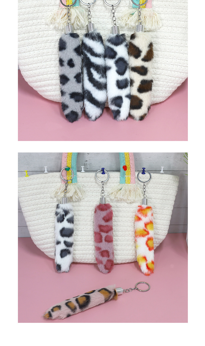 フェイクファーの豹柄テール、マルチカラーの小物アクセサリー、キーホルダー、工場直販、越境クラシックな豹柄テールペンダント