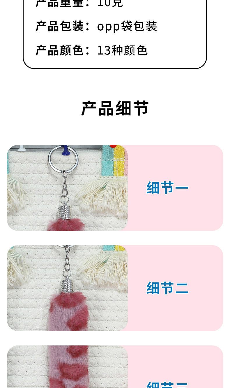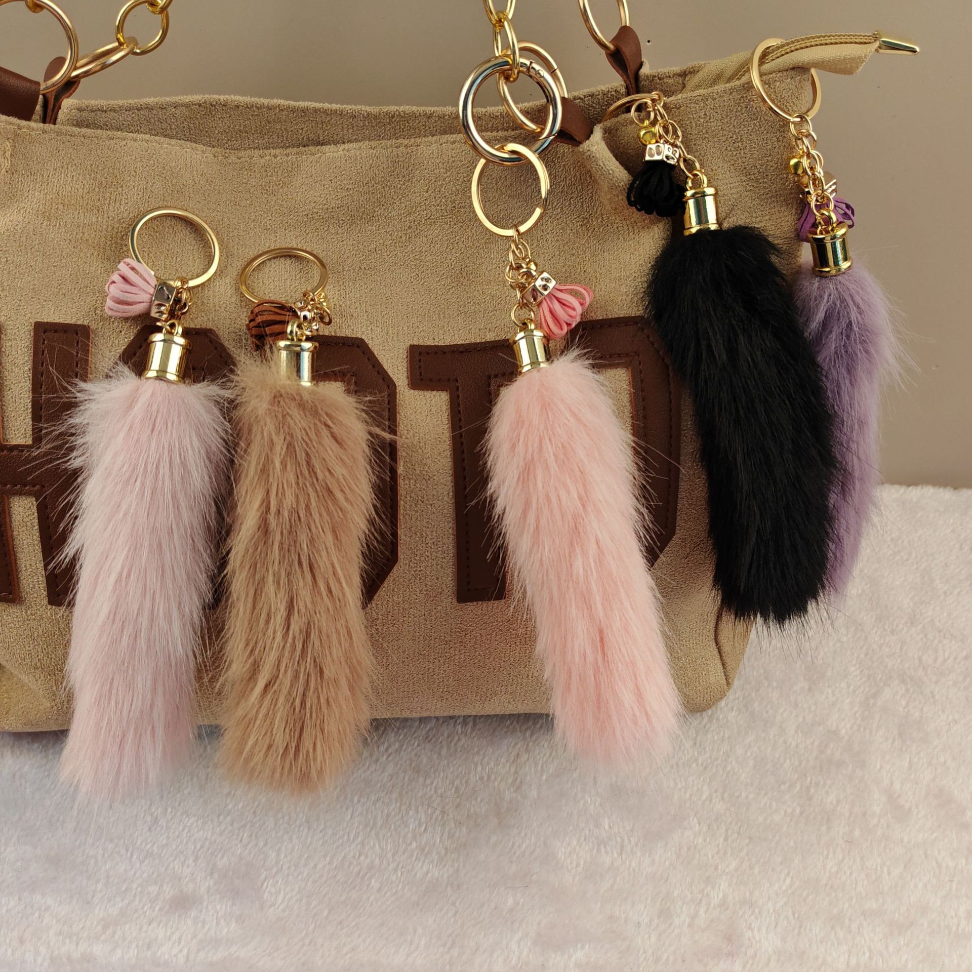 精致时尚轻奢百搭复古多色细闪仿真动物毛绒尾巴钥匙扣包包挂件