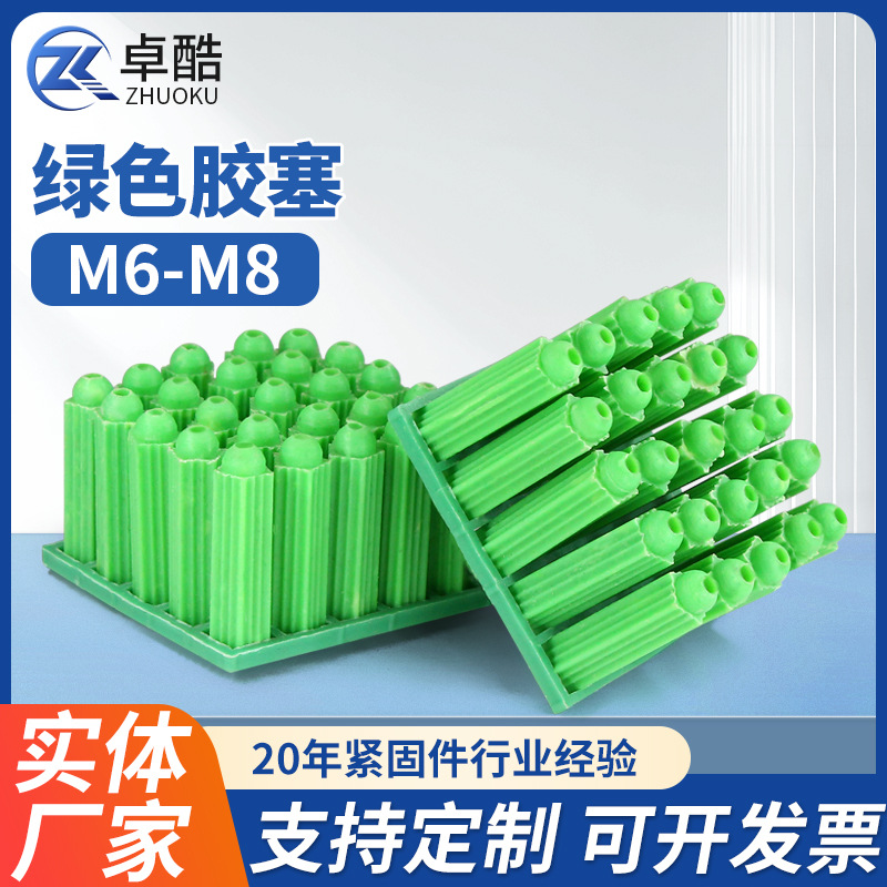 プラスチック拡張チューブグリーンナイロンゴムプラグプラスチック拡張プラグゴム粒子壁拡張プラグタッピンネジチューブ 6 ミリメートル 8 ミリメートル