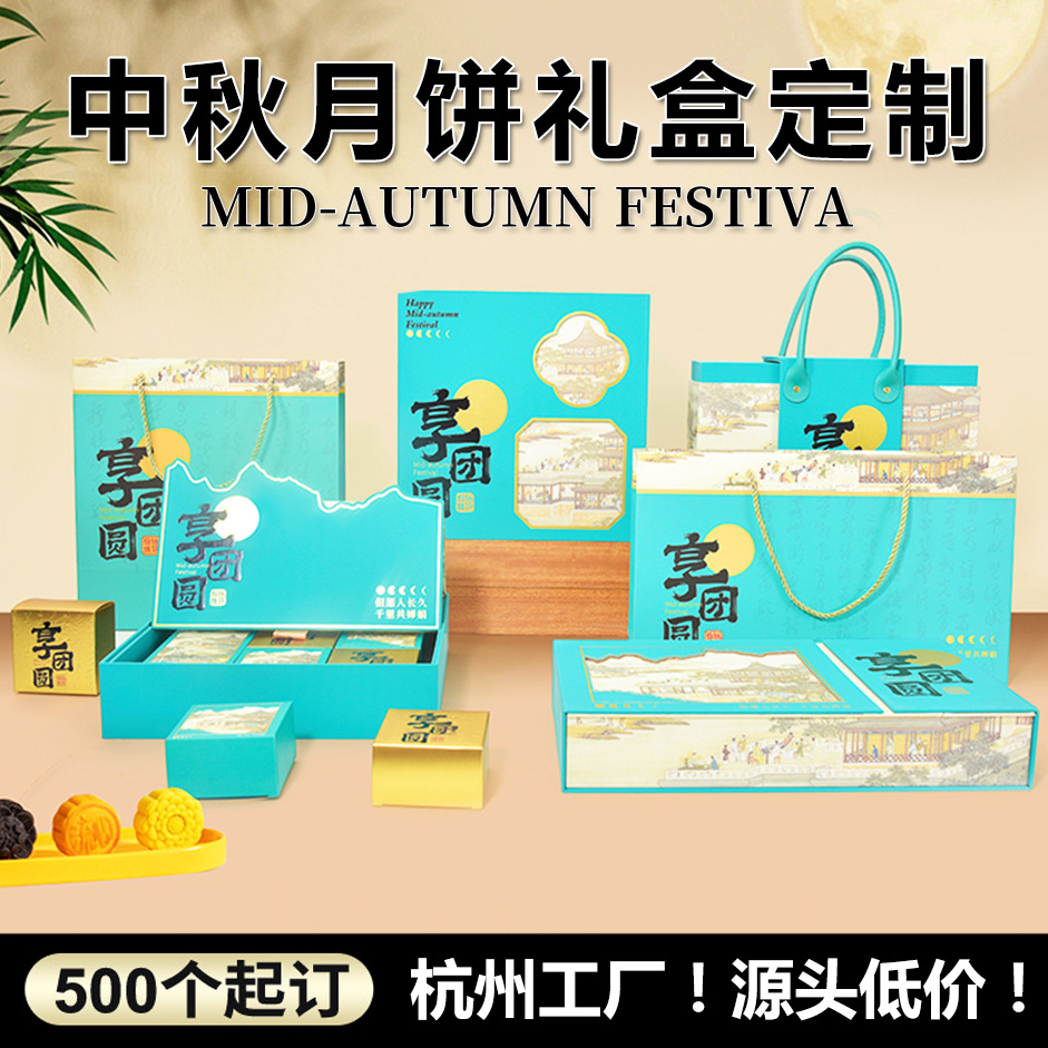 月餅包装箱カスタムブルー中秋節ギフトボックス国民トレンド立体マルチパック卵黄クリスプ月餅包装カラーボックス