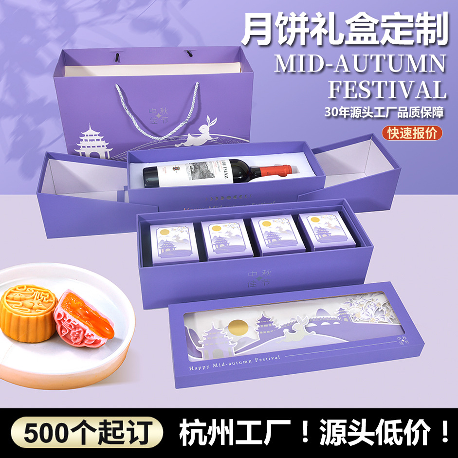 紫色の二層月餅包装箱カスタマイズされたポータブル国民トレンド中秋節ギフトボックス 8 個月餅カラーボックス包装ギフトボックス