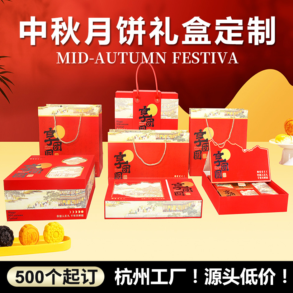 月餅包装箱カスタム赤中国絵画立体中秋月餅包装ギフトボックス二層卵黄クリスプ色紙箱
