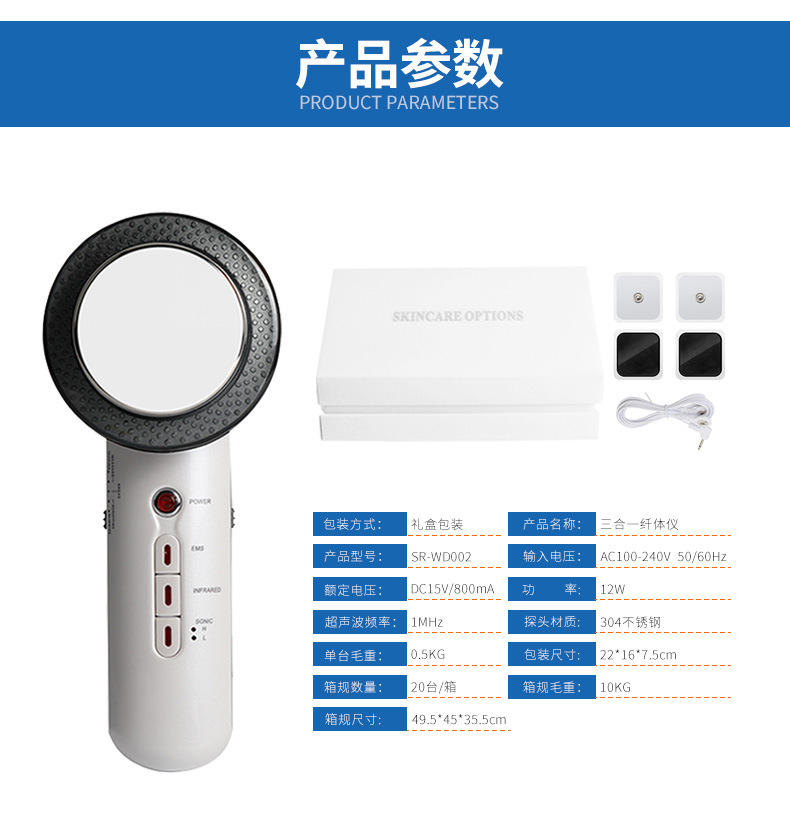 三合一繊体計超音波導入器遠赤外線美体シェイプアップ美容器メーカー卸売りクロスボーダー