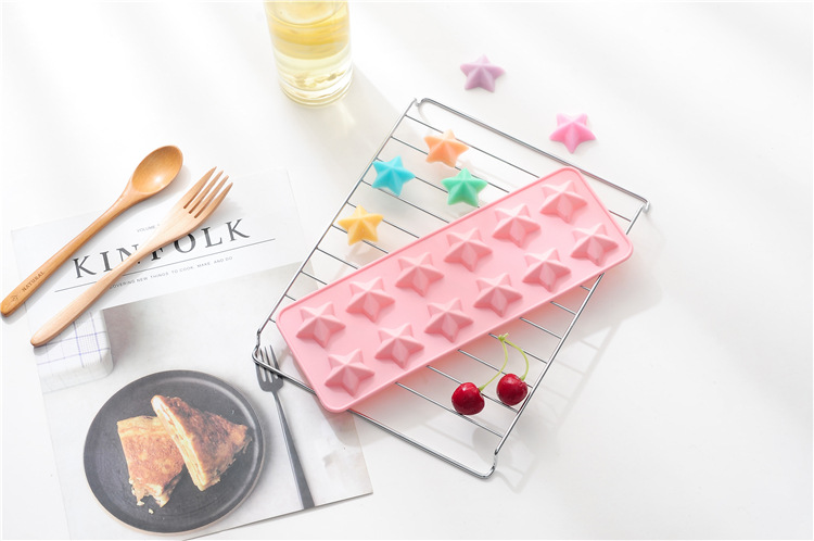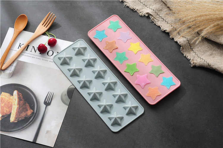厚みのある15個の五芒星型シリコンチョコレート型、キャンディー型、漫画型、ベーキングケーキ型、製氷皿、クリスタル型、エポキシ型