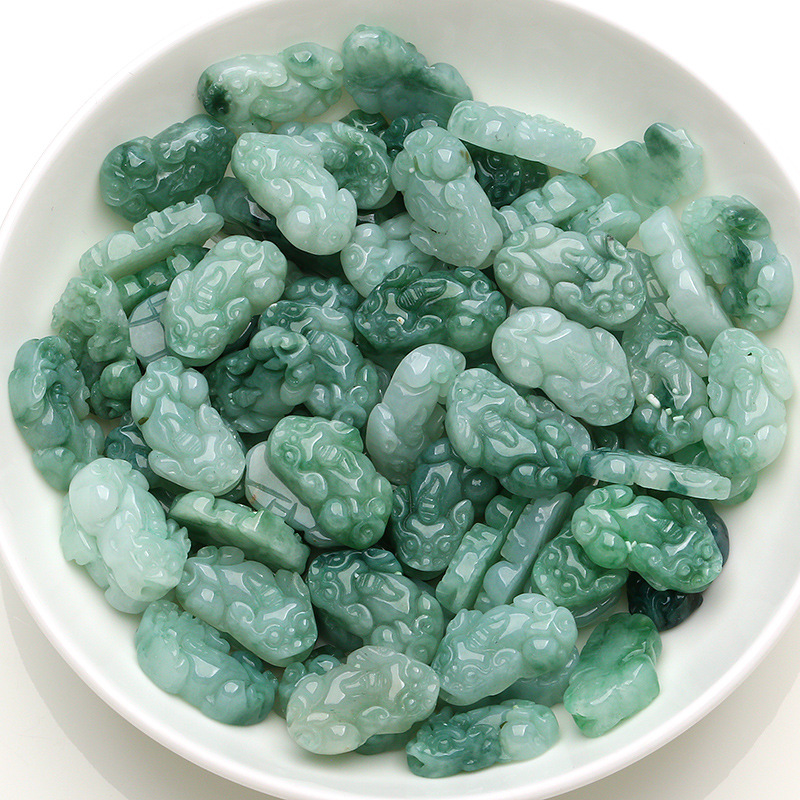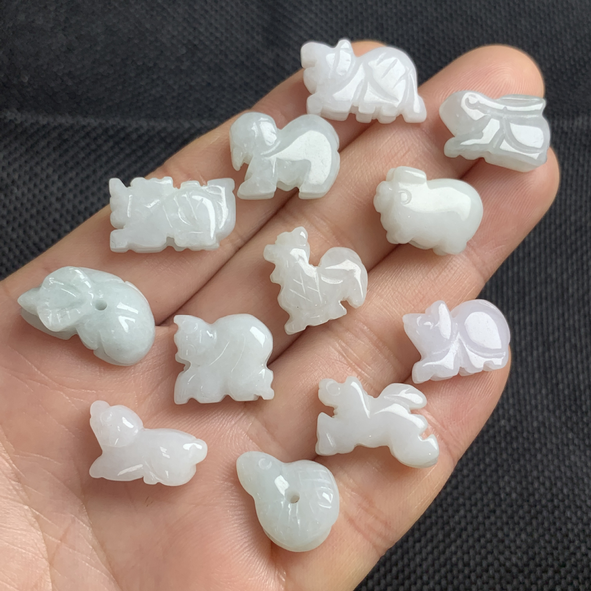 卸売りミャンマー翡翠A品十二生肖散件手作り彫刻立体生肖DIYブレスレット散珠アクセサリー