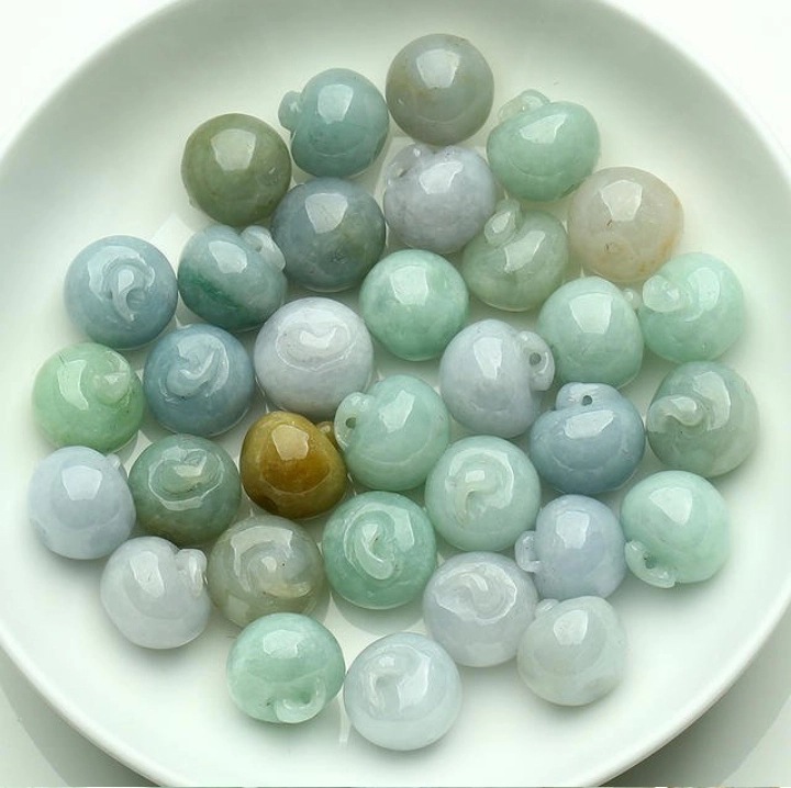 玉翡翠三彩小平安ボタン散珠diy部品玉ボタン配送プレゼント