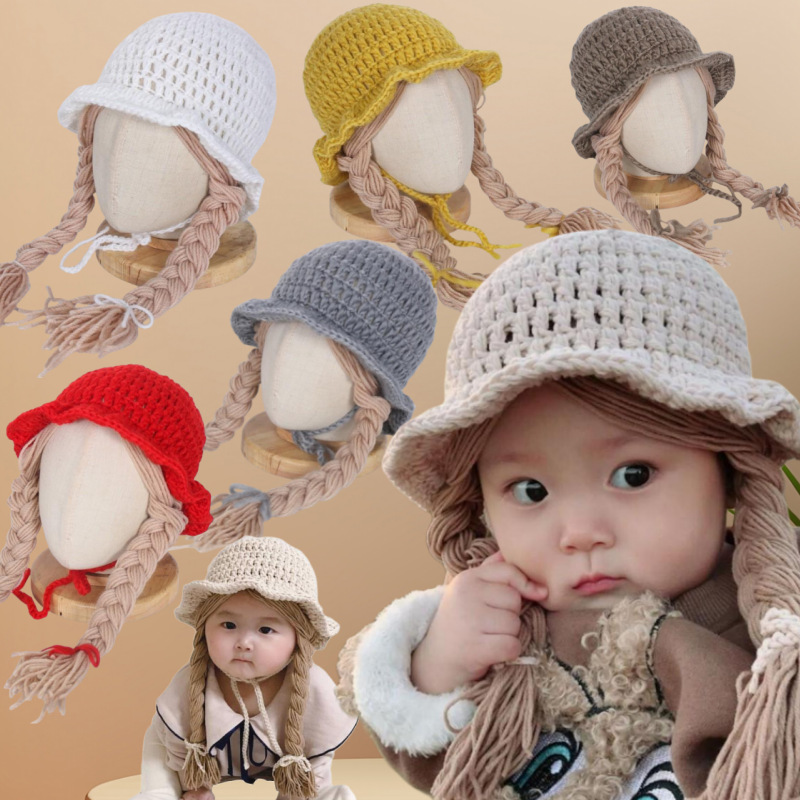 子供用ニット帽韓国風秋冬新作かわいいウィッグ大きな三つ編みベビープリンセス帽子メーカー