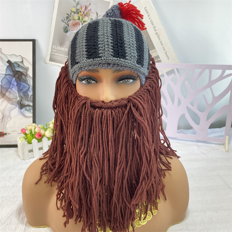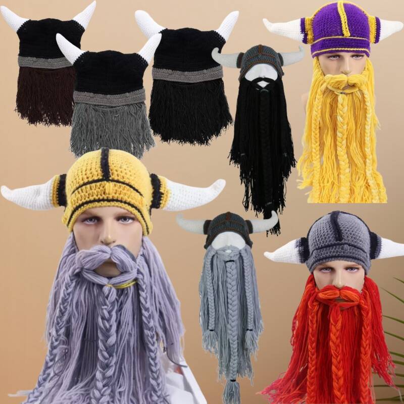 ハロウィーン浮かれ騒ぎパーティー手作り男性バイキング大ひげ牛角帽クリスマス成人変毛糸帽