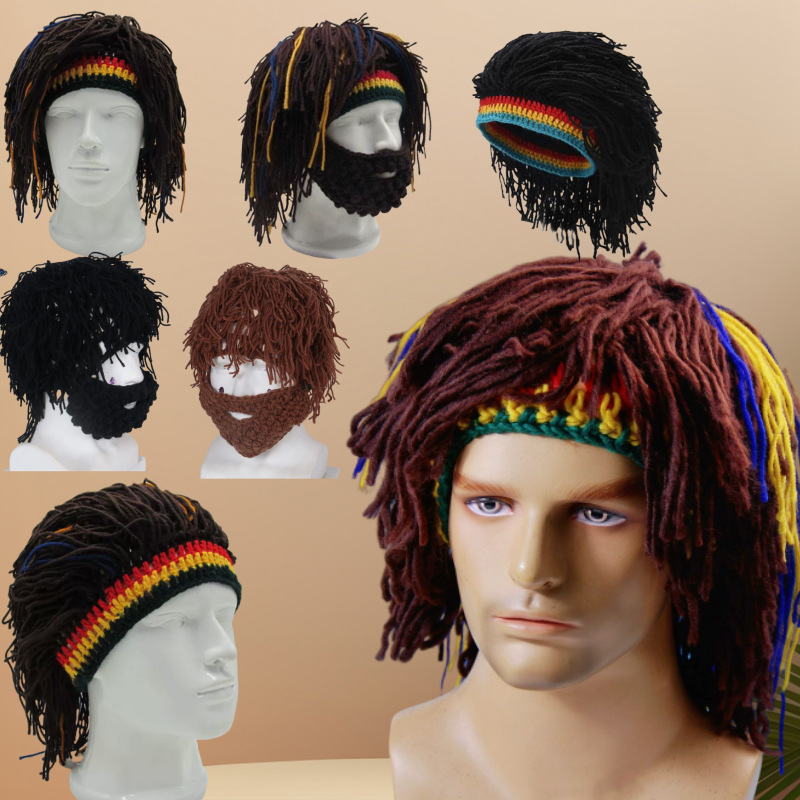 秋冬の欧米のよく売れるひげの狂人の帽子のかぎ針の毛糸のかつらの帽子の外国貿易の成人のアイデアの稲わらの帽子